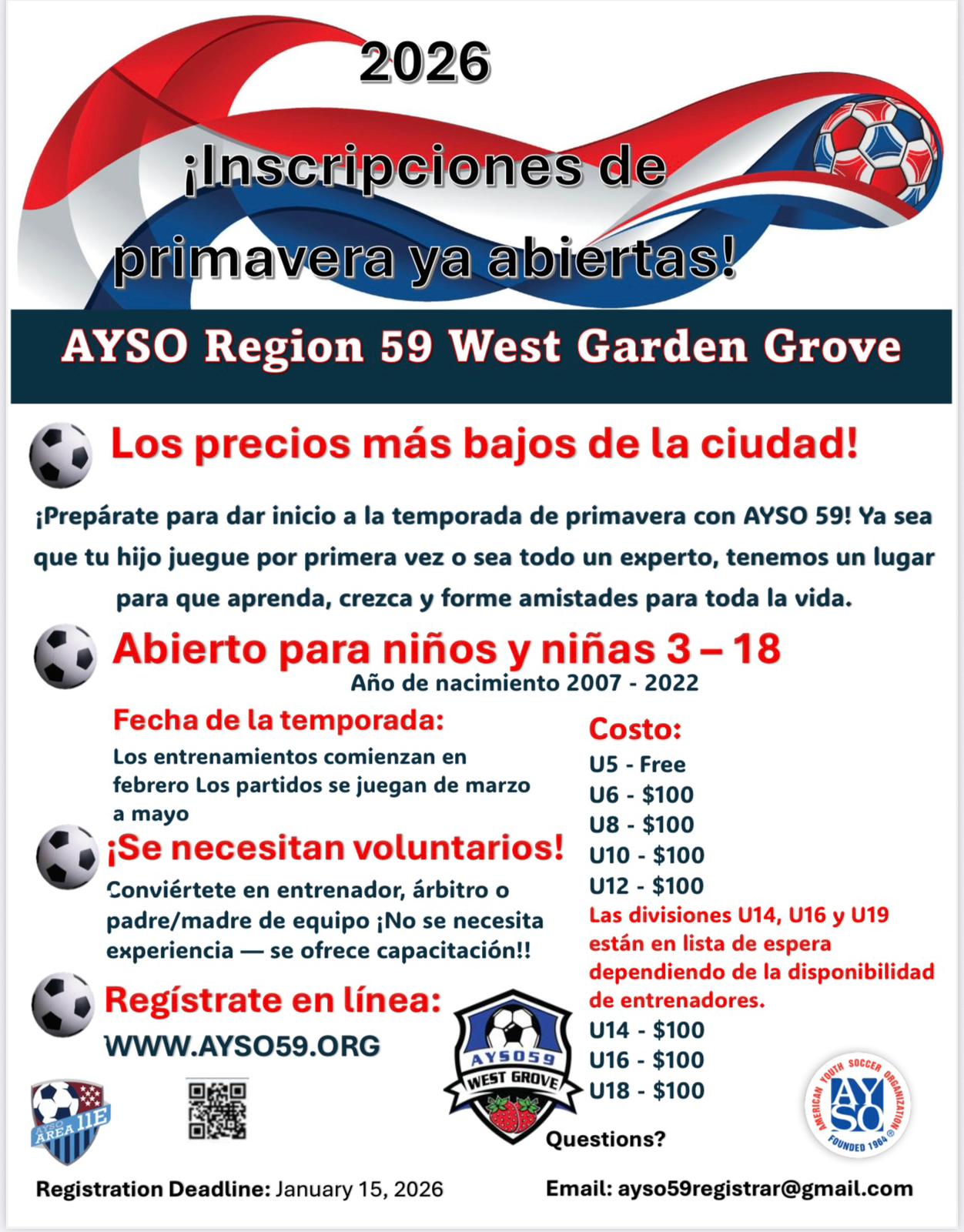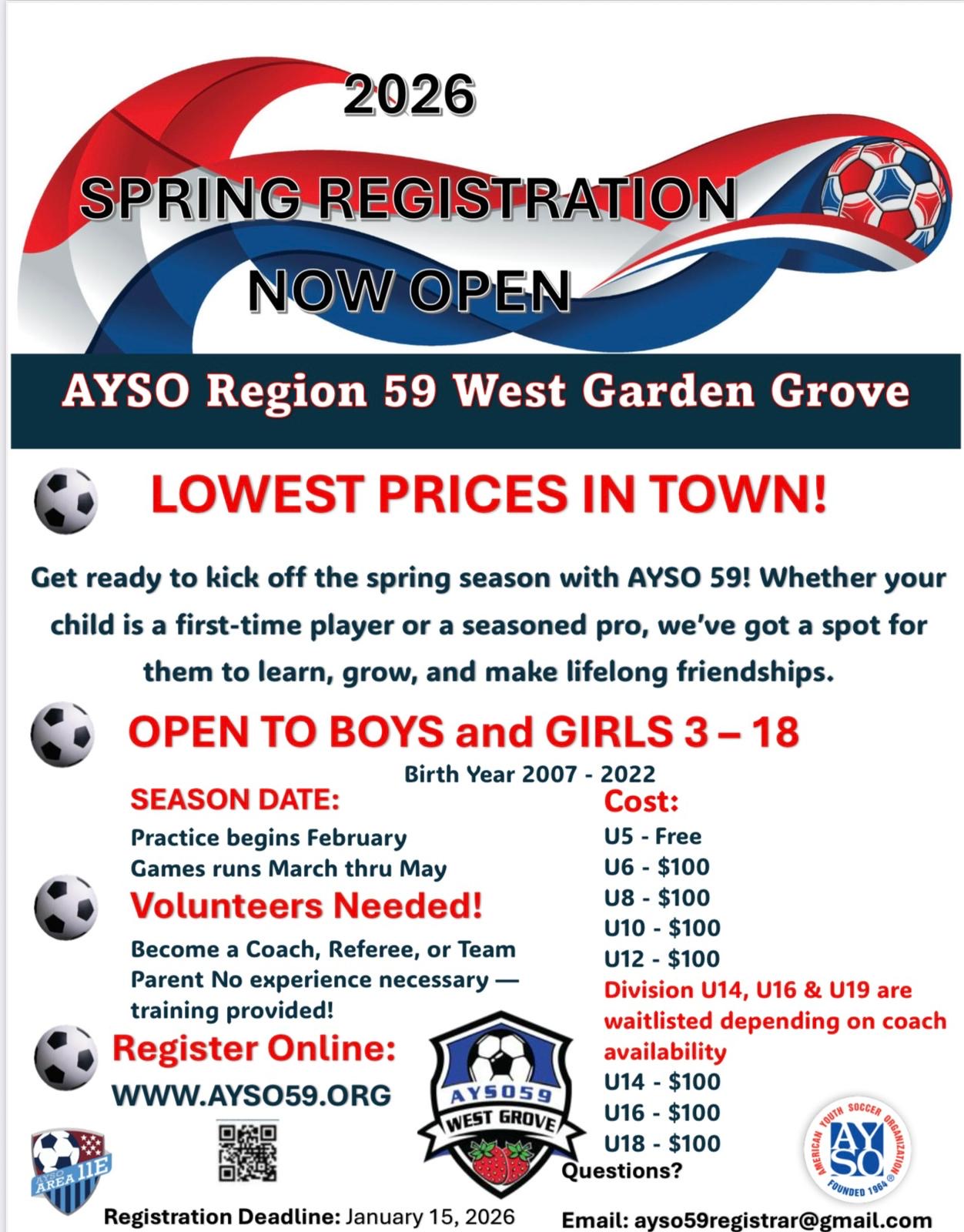 SPRING 2026 REGISTRATION IS NOW OPEN!! (closes Thurs., January 15th)